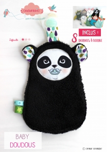 Patron numérique de doudou avec attache-tétine pour les bébés. Ce patron inclut les gabarits en taille réelle et les pas-à-pas pour coudre 8 doudous différents. On peut aussi en faire une peluche plus en volume en y insérant de la ouate à l'intérieur, pour les plus grands. Nécessite une machine à coudre pour la confection de ce doudou.